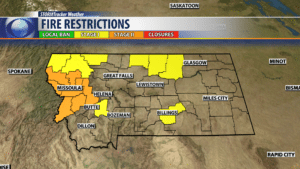 WEST YELLOWSTONE: LOW: 38°; HIGH THURSDAY: 79°. Wildfire smoke is keeping West Yellowstone’s air quality rating in the “Unhealthy” range this afternoon. Look for warm and dry weather for the rest of today but there is a slight chance for a pop up thunderstorm Thursday.